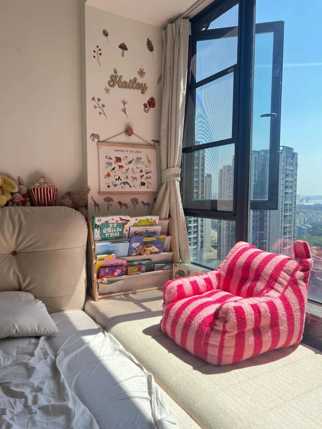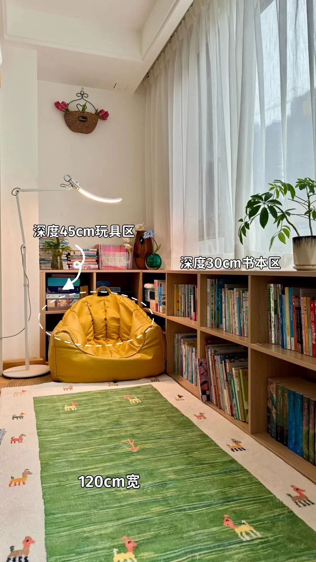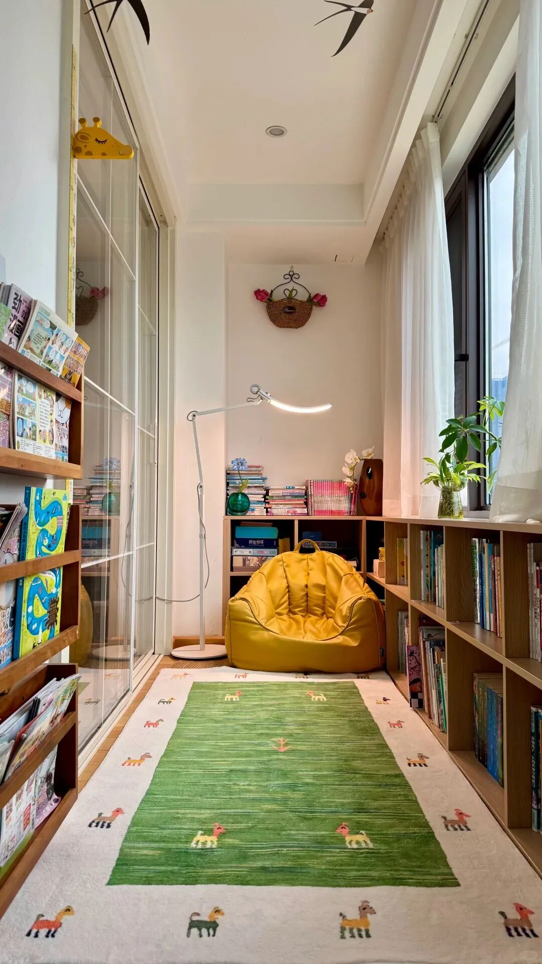 不用多大空间,客厅一角、卧室飘窗、阳台边,只要有一小块安静的地方,就能打造儿童阅读区。