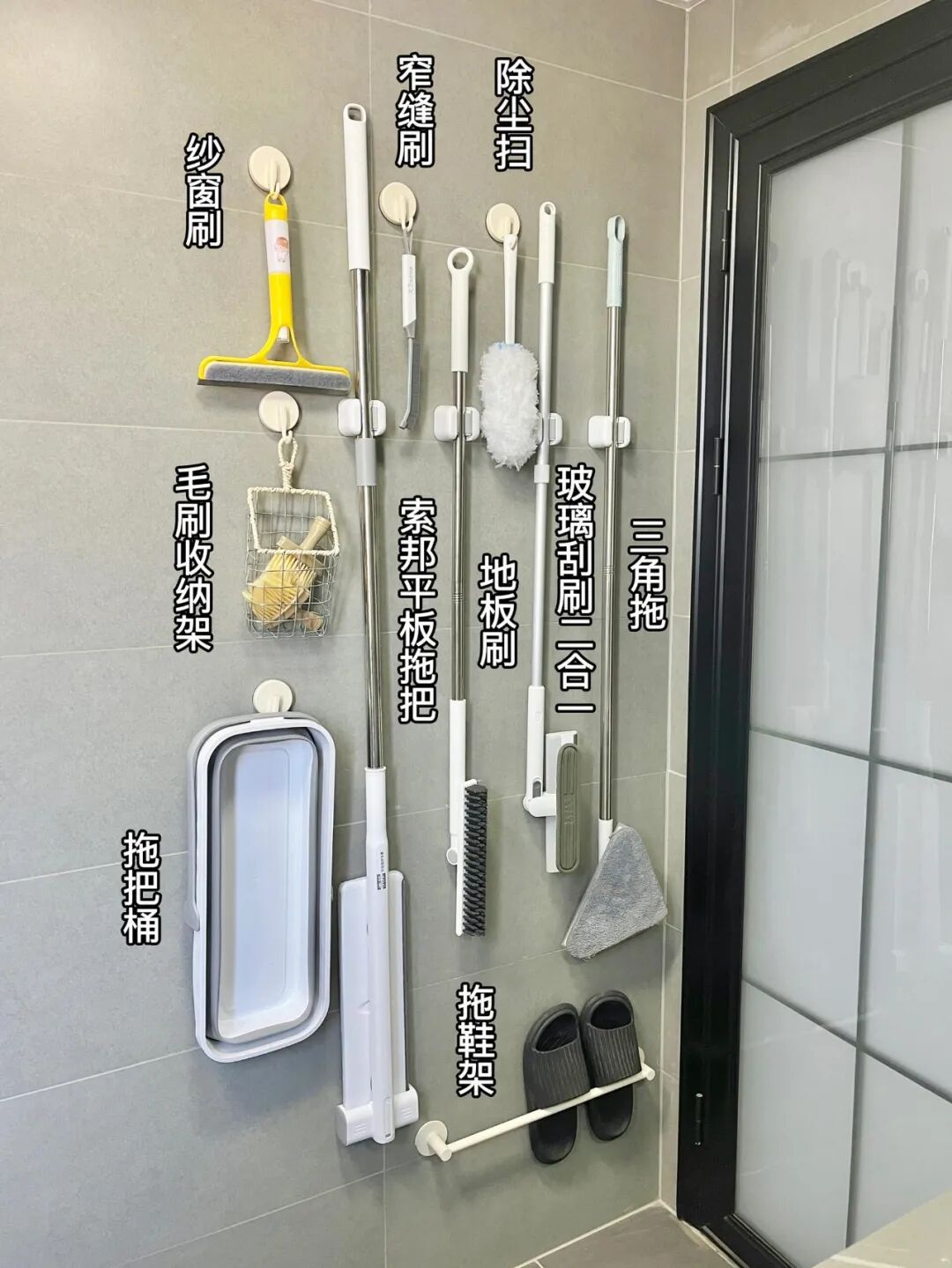 我家在卫生间墙面装了免打孔挂钩、拖把夹、挂杆,所有的清洁工具统统上墙,整齐又好拿,小户型也能清爽无敌。家里清洁工具乱放的,真的可以试试这个思路。