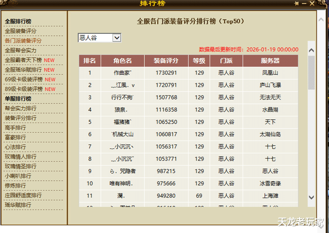 今年刚刚结束的名动江湖中,【庐山飞瀑】服务器的江风大佬一口气上了两个号,豪掷7000万元宝,将刚刚问世一年多的恶人谷提升至172万评分。