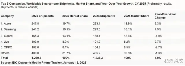 苹果公司在 2025 年秋季发布的 iPhone 17 系列四款机型,销量大幅增加,助力苹果超越三星,时隔 14 年重回全球智能手机出货量第一的位置。