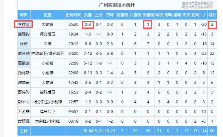 不是么?在昨晚进行的俱乐部杯赛中,广州队与广东队交手,结果广州队大输于广东队14分,最多落后20分。最令人扎眼的是广州队的国手李祥波,都知道他差,但不知道他这么差,天呀,作为国家队中锋打了25分钟,仅抢到一个篮板,你说这事怪不怪?你说这事奇不奇,简直让人不敢相信眼睛,这还是国手吗?这还是昨晚的首发队员吗?除了抢不了板,也得不了分,全场3投0中,运动战一分不得,只靠罚球捡了2分,这数据真是惨不忍睹。