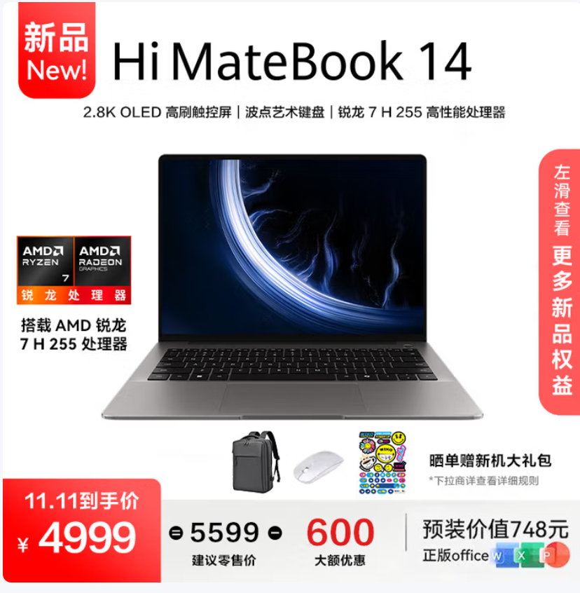 双十一激战正酣,笔记本电脑作为打工人的必备生产力工具,自然也成为购物车里的重点关注对象。今年不少精明用户,都不约而同地把一个刚上市不久的新产品——WIKO Hi MateBook 14 锐龙版,悄悄加进了“必买清单”。那么问题来了:这台搭载AMD 锐龙 7 H255 移动处理器的轻薄本,到底用起来香不香?双十一这一波,到底该不该冲?