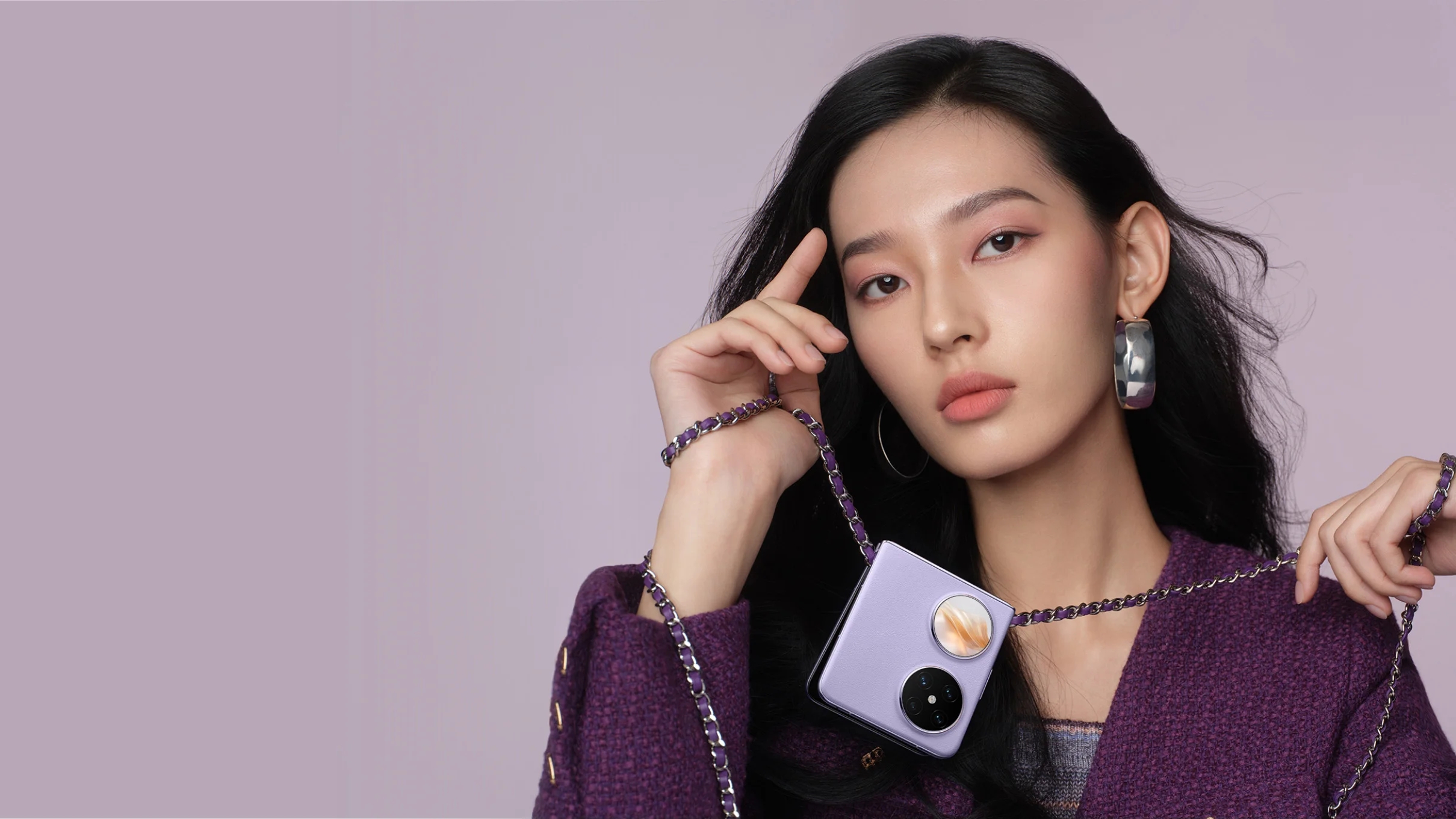华为Pocket2采用6.94英寸临境柔性OLED主屏,分辨率为2690*1136,支持1-120Hz LTPO自适应刷新率,采用侧边指纹识别方案。这块主屏拥有2200尼特峰值亮度,支持像素超透光技术,拥有更低的功耗和更优秀的显示效果,护眼方面支持1440Hz高频PWM调光功能。外屏为1.15英寸圆形OLED屏幕,分辨率为340*340,支持1-60Hz LTPO自适应刷新率,屏幕盖板为耐用的铝硅玻璃。