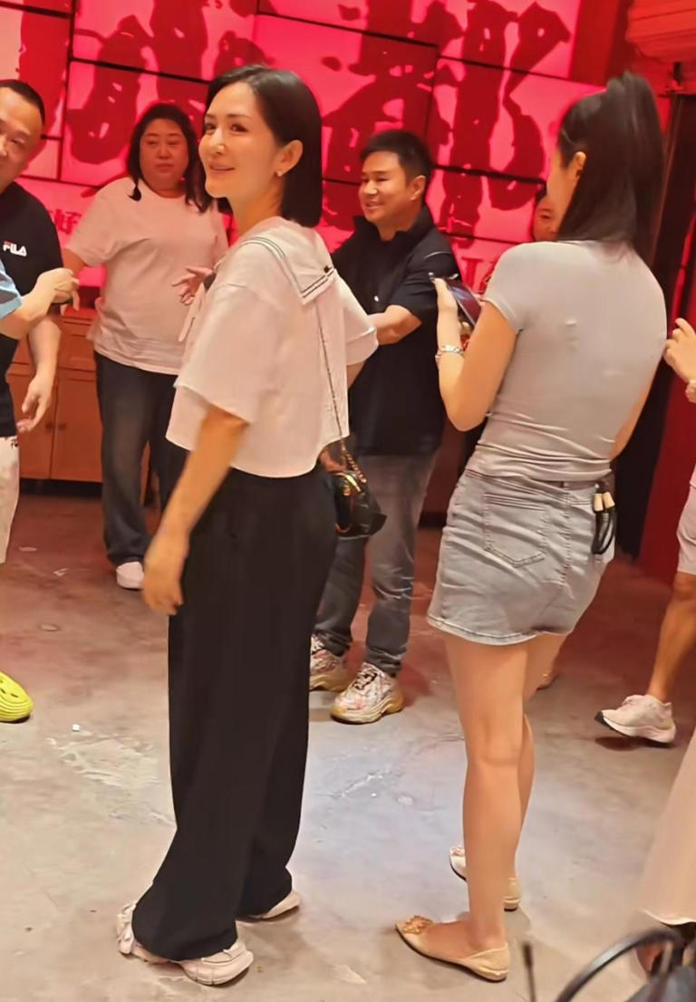 当天谢娜的穿衣打扮低调接地气,穿搭没有什么时尚感,看起来挺土气的,但这身衣服确实看起来很休闲,还是舒服最重要。