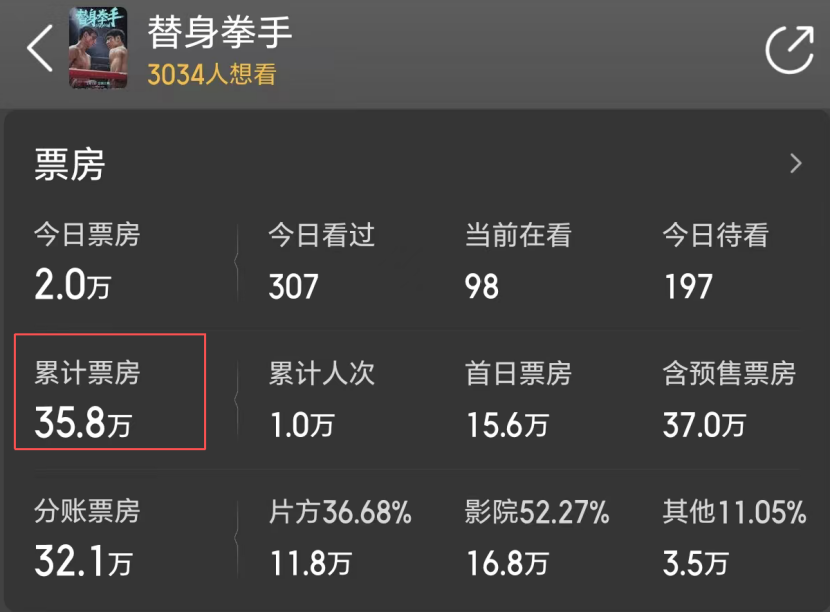 像《替身拳手》这样上映5天累计票房才35万的,显然已经被彻底打懵了,点亮2026年首个大扑街成就。