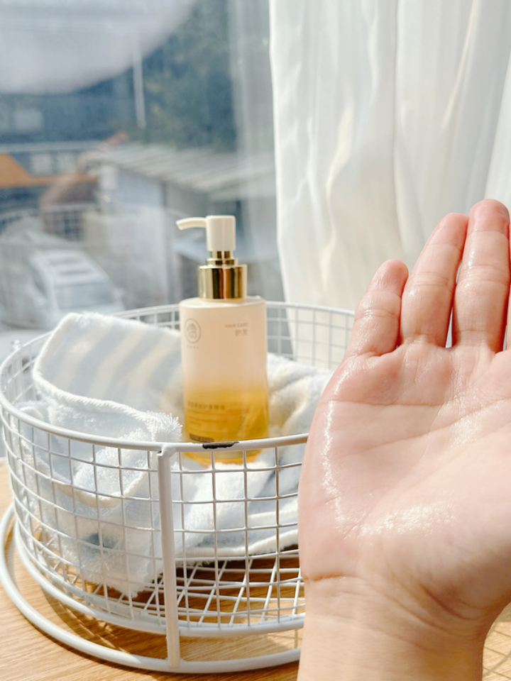 它的香型表现尚可,刚抹湿发像青苹果,没特别感,可睡前吹半干抹完躺床,闻着雪松混乳木果味,比助眠香薰还放松。上周加班回家,男友说“你头发像刚晒的被子”。缺点是夏天出汗多会闷,可能是酯类没平衡,遇汗窜味。
