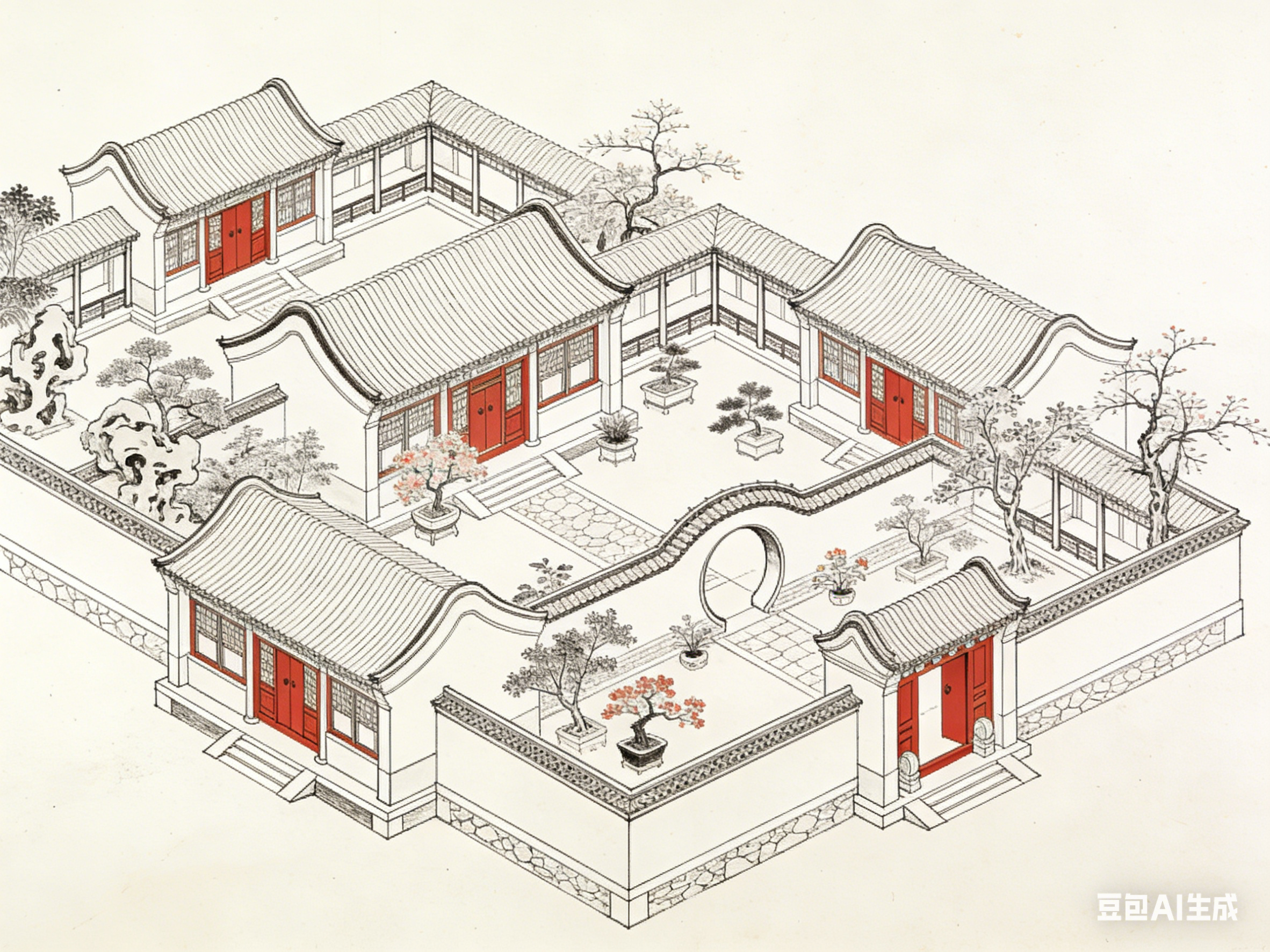 除象征意义外,竹还兼具实用价值与景观功能。竹枝挺拔,可分割空间,形成自然屏障;竹叶婆娑,可遮阴纳凉,调节院落微气候。春日新竹抽芽,夏日竹影浓荫,秋日竹枝坚韧,冬日竹傲霜雪,四季景致各异,为院落增添持久的观赏价值。