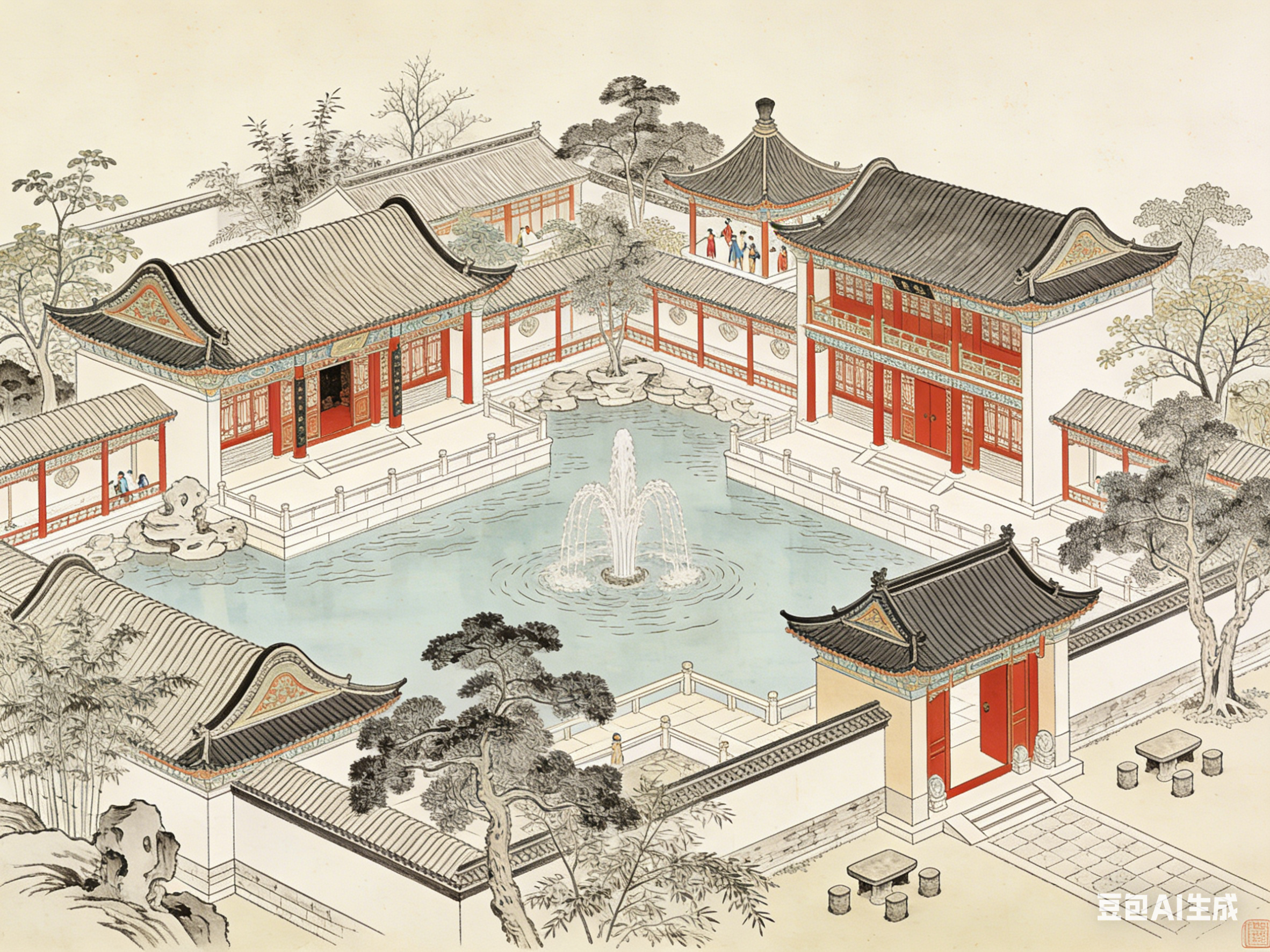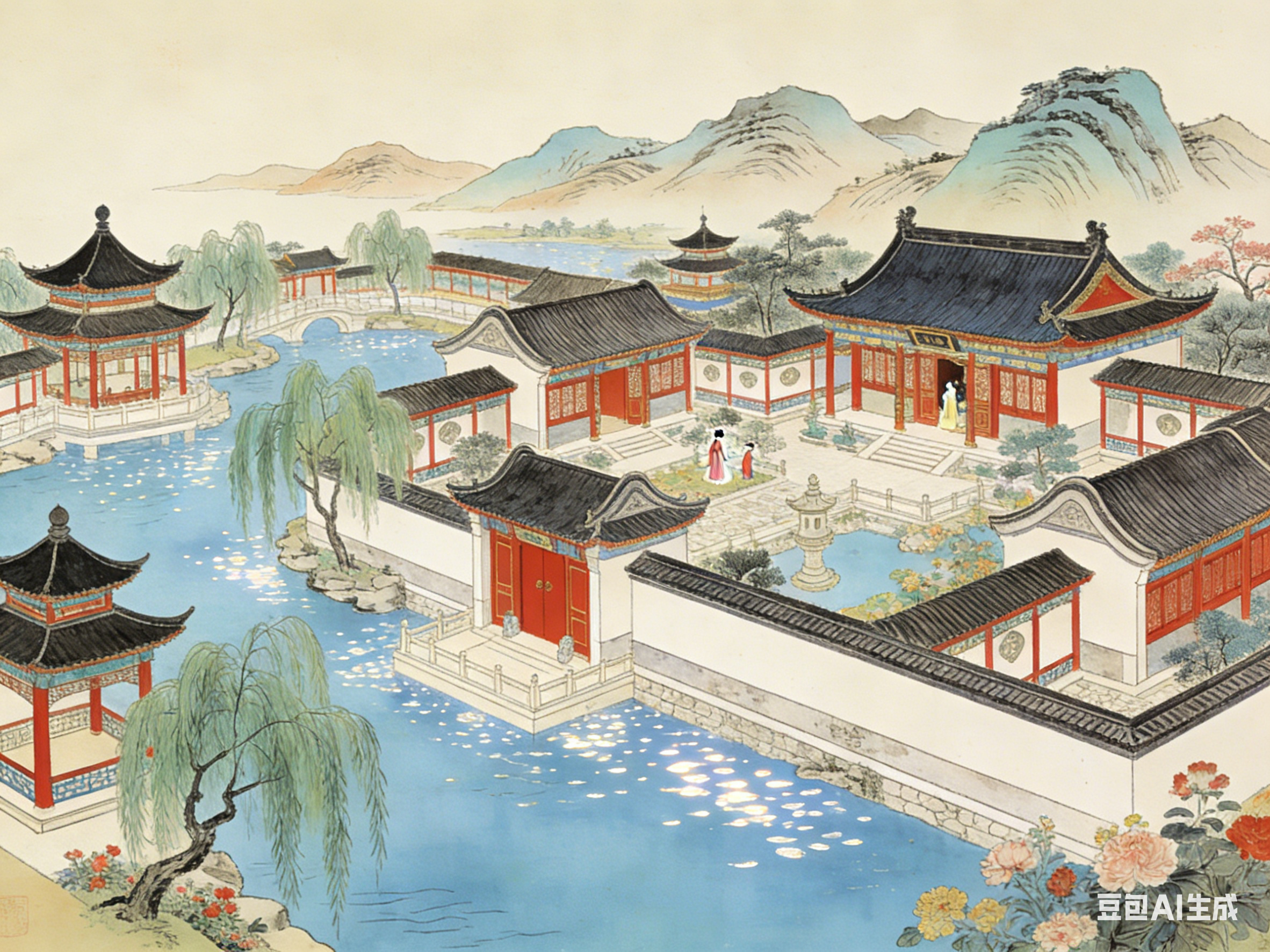 大观园的水景是景观元素,承载着深厚的文化寓意。水的“流动”特性,暗合贾府的兴衰变迁,从盛极一时到逐渐衰败,如溪水般无法停滞;水的“清澈”特性,象征着黛玉、妙玉等人纯洁的精神品格,与园内的世俗繁华形成对比;水的“包容”特性,承载着人物的悲欢离合,见证了宝玉与姐妹们的欢乐时光,也映照出他们的悲戚与无奈。