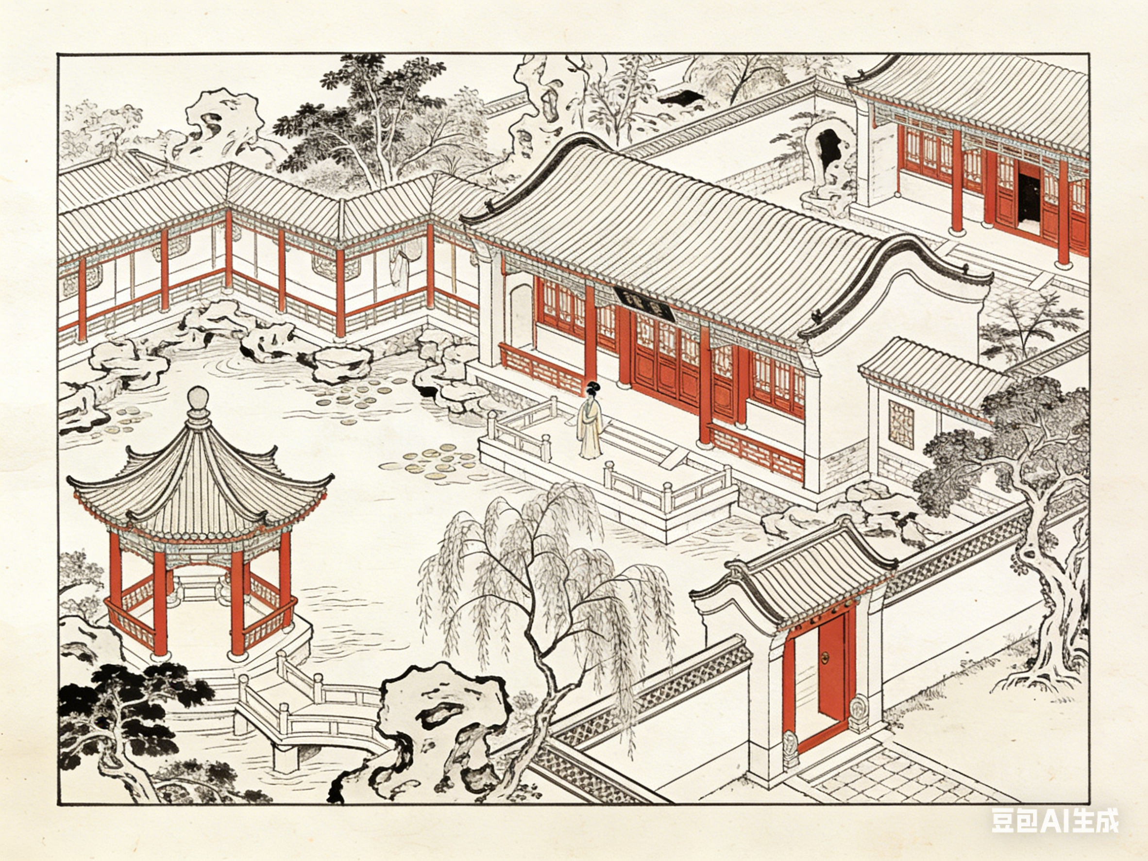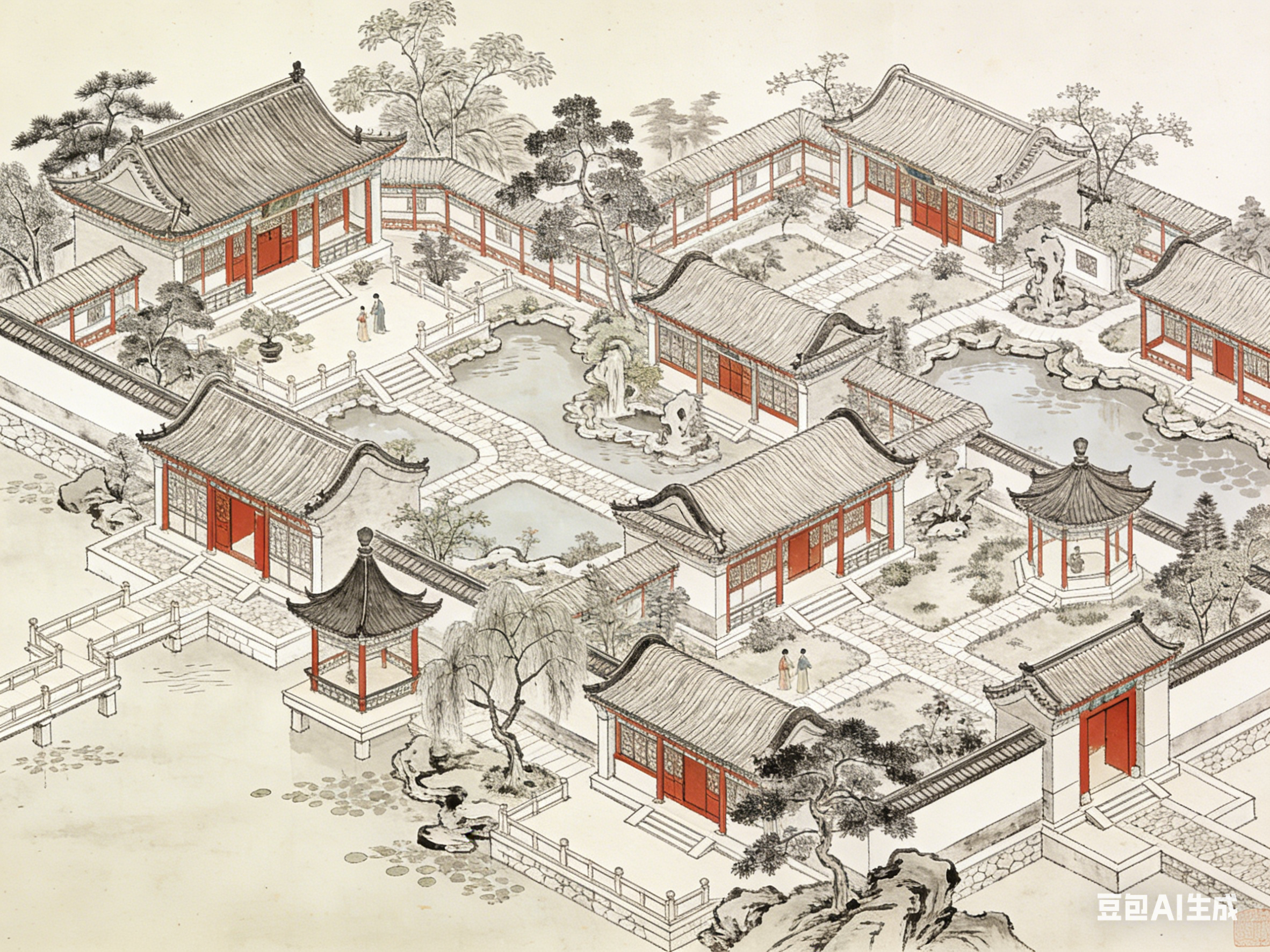 明清时期是中式园林的鼎盛时期,留下了众多传世名园,但文字记载详实、细节丰富的园林描述极为罕见。大观园通过《红楼梦》的细致描写,从布局、建筑、植物、水景到造园手法,全方位展现了明清贵族园林的风貌,成为研究明清园林的文字标本。