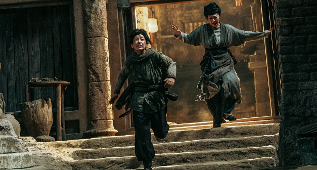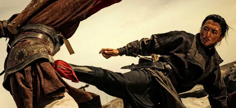 “络腮胡”谛听(45岁的谢霆锋)劲装打扮,跟刀马在大沙尘暴中打戏也很有看头。