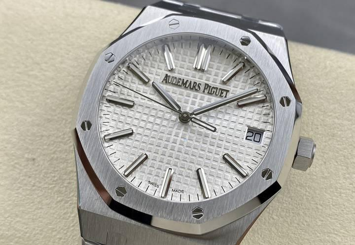 爱彼15510系列官方于2022年7月发布,采用爱彼CALIBRE 4302机芯,腕表尺寸是41mm,表壳材质是316L精钢。AP15510系列相比于AP15400,盘面更加简约,满足不同表友的审美需求。