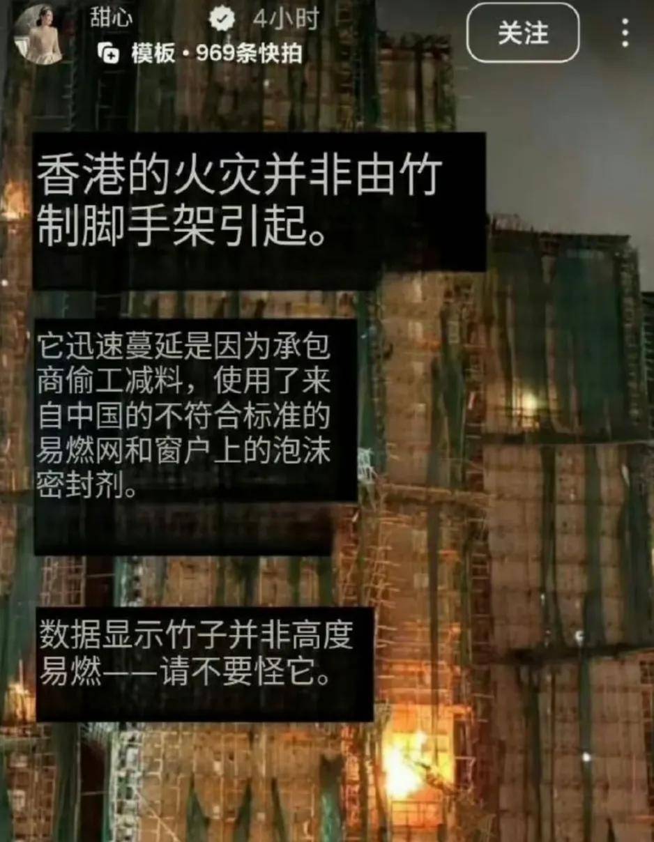 而甄子丹这次被老婆坑的事,简直是踩在了所有雷点上。汪诗诗在香港大火救援的关键时候,转发英文 INS 甩锅 “来自中国大陆的不合规易燃防护网”,还在官方调查结果没出来前带节奏。更让人反感的是,她先在微博发 “特供道歉”,被骂两面派后才把文案同步到 INS,道歉毫无诚意,彻底点燃了网友的怒火。