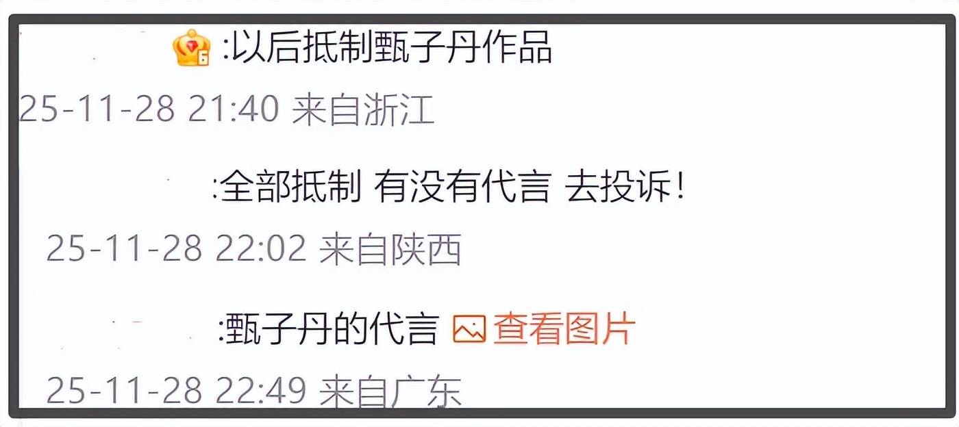 网友们的反击来得又快又狠:甄子丹全网社交账号评论区全被 “别来内地捞金”“忘祖” 的骂声淹没,置顶的夫妻秀恩爱动态更是成了 “大型吐槽现场”;大家自发整理他的待播作品清单,直言 “《疾速追杀 4》再火也不看”;连合作 19 年的超威电池都被牵连,网友组团去品牌评论区呼吁 “换代言人”,还整理出所有代言品牌清单,号召集体投诉抵制。