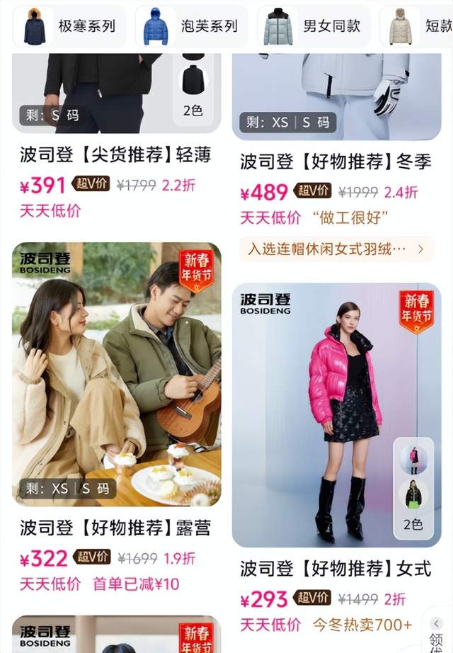 特卖电商唯品会羽绒服走热,同样是这个道理,不仅平台羽绒服等保暖品类关注度不断攀升,其中最火热的正是有性价比的折扣大牌。比如一款波司登售价为299元的羽绒服,近期销量居于平台前列。而另一款充绒量350g左右、售价仅459元的雪中飞羽绒服,也尤其受到北方消费者的欢迎。