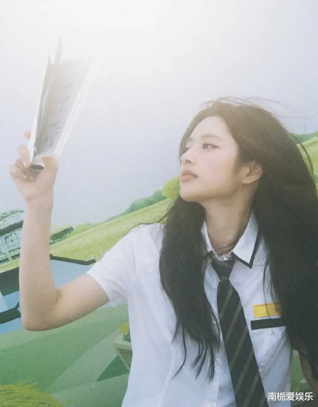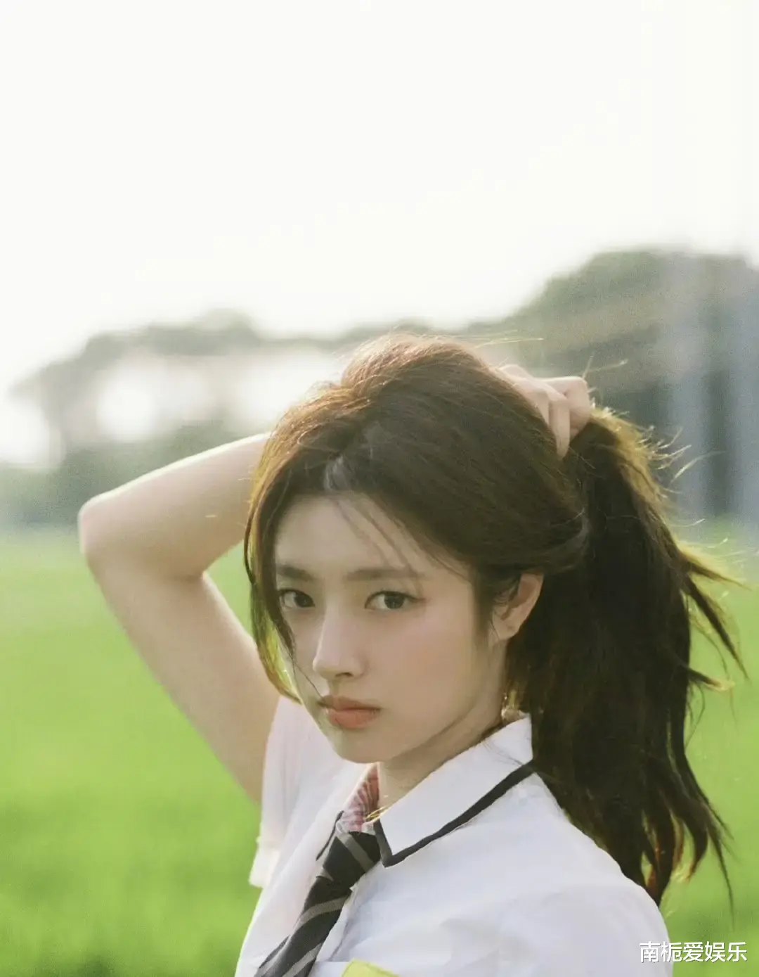 这组造型的魅力,在于它精准复刻了“校园女神”的氛围感。徐若晗内搭简约白衬衫,系上学院风条纹领带,清爽又不失书卷气。眼神清澈,笑容温暖,每一个动作都透着少女的灵动与朝气。网友评价甜而不腻,清纯中带着一丝坚韧,仿佛春日里的一抹暖阳,能驱散都市生活的疲惫。更有粉丝直言:“这就是我学生时代暗恋过的学姐本人!”