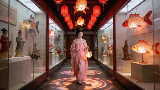 一盏合格的无为鱼灯,需经“竹篾扎骨、彩纸覆身、金线点睛、烛光映辉”多道工序,容不得半点敷衍。老艺人们选用坚韧的竹篾,以“七弯八转”之法扎制骨架,暗合长江七湾八汊的水系脉络,赋予鱼灯灵动风骨;糊纸环节选用柔韧的纱布替代传统宣纸,既保留透光性又提升耐用性,再以五彩颜料绘制鳞片,一笔一画勾勒出鱼的鲜活神韵;灯腹之内,如今虽以电子灯替代传统烛火,却依旧延续着“灯亮鱼活”的奇妙意境,点亮后鳞光流转,宛如游鱼穿梭于光影之间。从征集时对工艺细节的严苛把控,到运送中对每一盏鱼灯的悉心防护,再到布展时对陈列角度的反复调试,每一步都彰显着对非遗的敬畏与珍视。