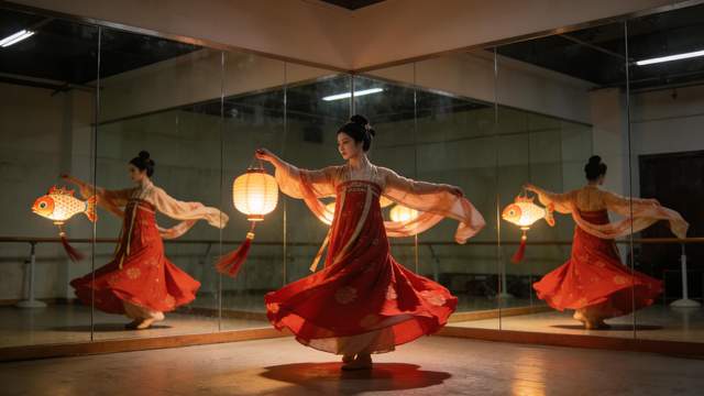 排练现场,舞者们手持重达十余斤的鱼灯,在锣鼓与唢呐的传统曲调伴奏下腾挪翻转,时而俯身模拟游鱼潜底,时而扬臂再现鱼跃龙门,灯随人走,人随乐动,光影交织间尽显皖江民俗的独特魅力。为适配京城舞台的灯光音效,团队还对鱼灯进行了细节优化,在鳞片边缘加装微光灯带,配合舞蹈动作形成流动的光影效果;音乐方面以无为民间吹打乐为基调,融入现代编曲元素,让传统韵律与时代节拍同频共振。这支舞蹈不仅是对无为鱼灯技艺的创新表达,更是对非遗“活态传承”理念的生动实践,让古老技艺在舞蹈中焕发新的生命力。