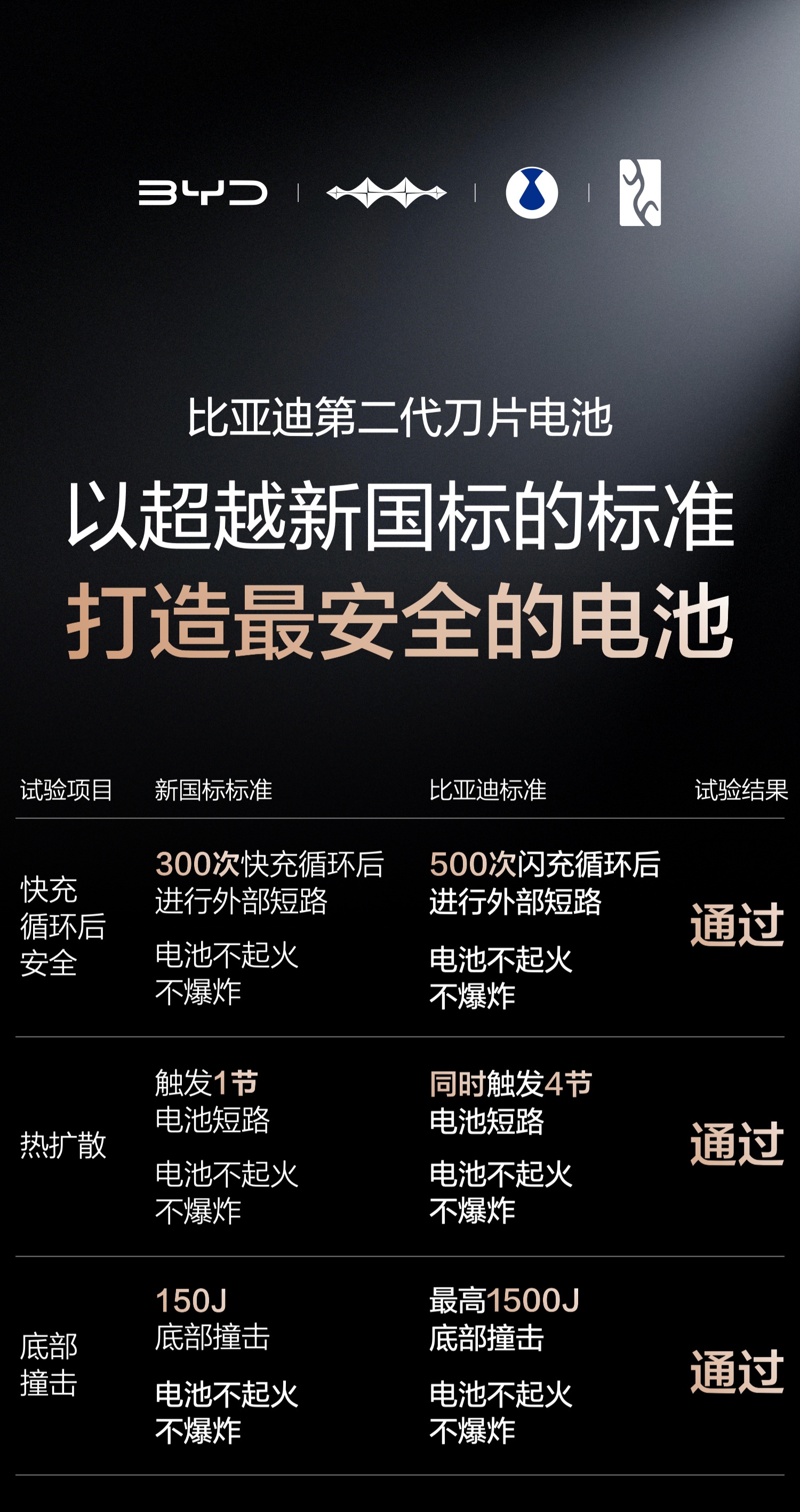 至于大家担心的安全这块,比亚迪更是“卷”到离谱。500次闪充循环后边闪充边针刺都不起火,怎么理解这个500次闪充循环?简单说就是相当于开了30多万公里、用了15年,而同时触发4节电池短路,周围电芯依然稳如泰山,还能扛住10倍新国标的底部撞击,用户开着更踏实。