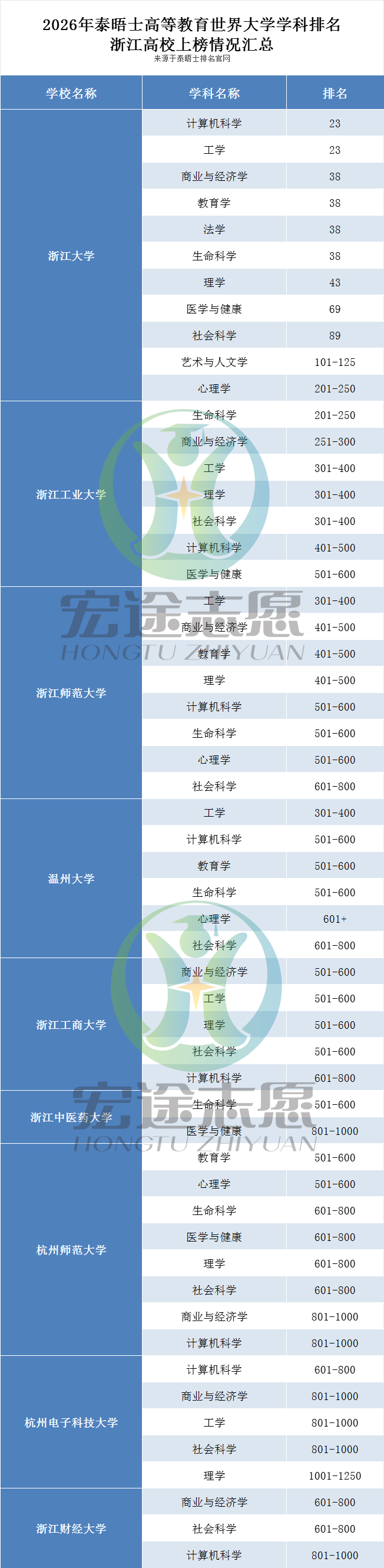 2026泰晤士世界大学学科排名揭晓!浙江9所高校上榜!宁波学子可关注!