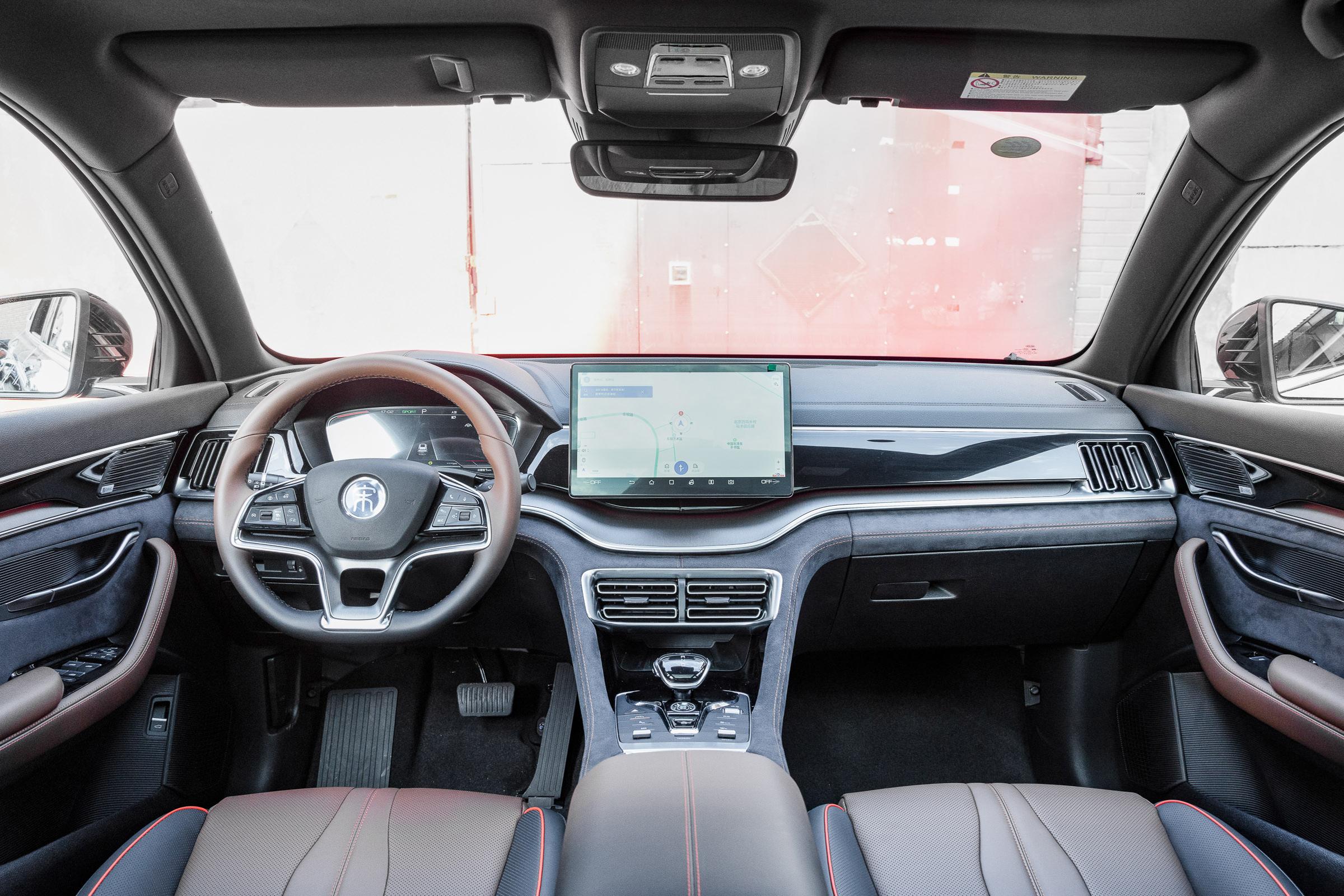 内饰方面,整个内饰看上去较为简洁素雅,但简洁并不简单,三辐式平底方向盘,采用皮质包裹,握感细腻, 12.3英寸全液晶仪表显示屏,可以清晰地显示全车信息。中控台采用对称式设计,12.8英寸的中控屏,提升了车内的科技感,可支持车联网,OTA升级,语音识别,WIFI热点。
