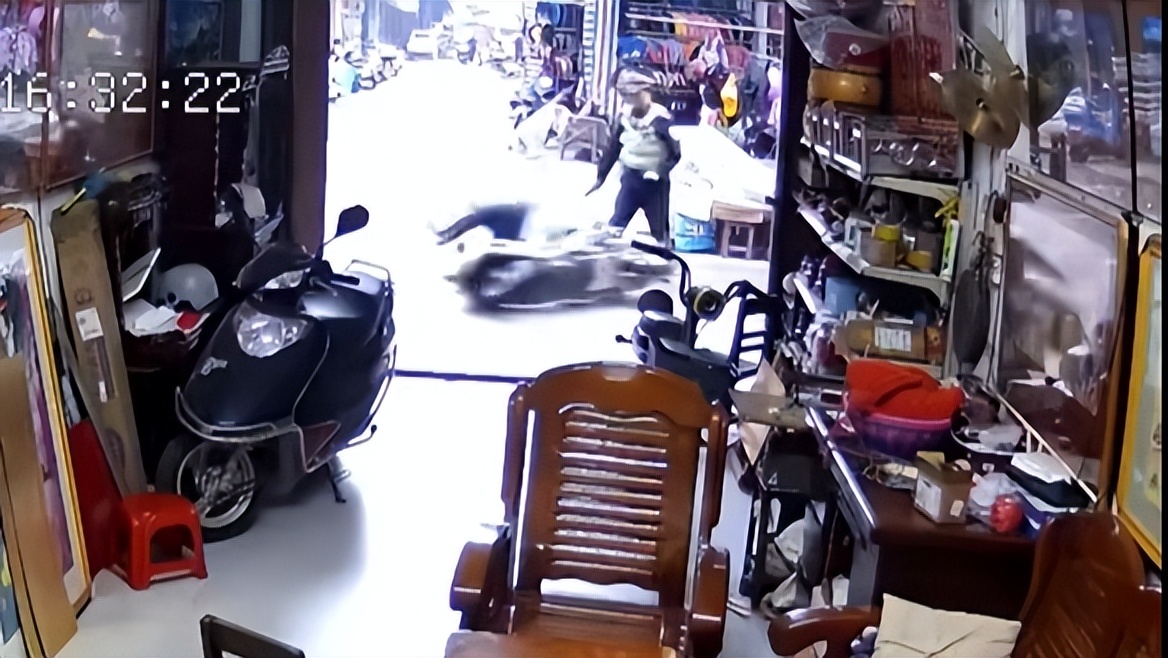 根据监控显示,当时交警在盘查过往的电动车辆,对不合法的电动车和不合法的驾驶行为进行处罚。当时交警手里还拿了一个警棍,看到有一辆电动车飞驰驶来,电动车看到交警之后并没有选择减速慢行。