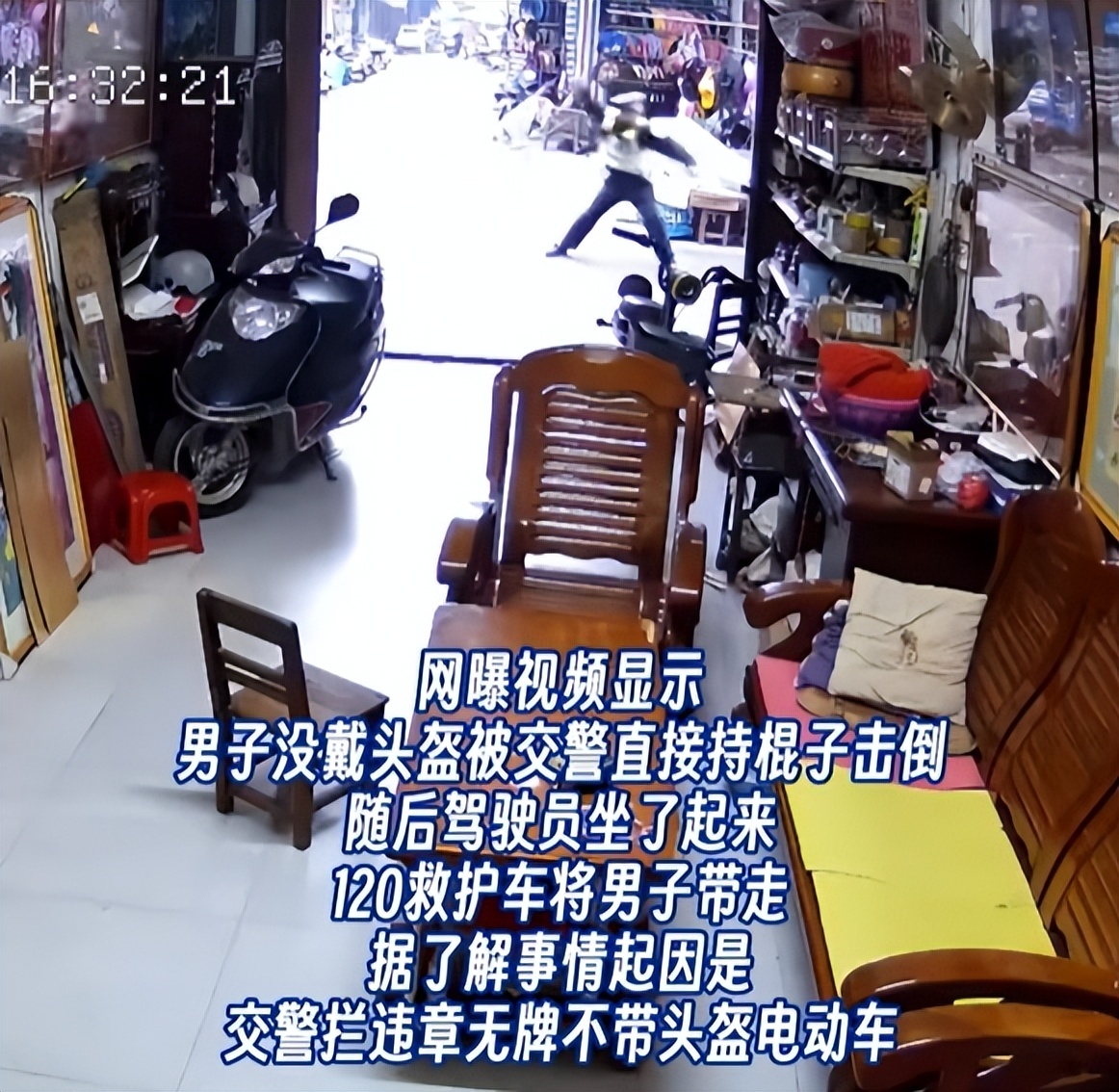 当时一名交警正在一个路口执勤,一家店铺的监控摄像头刚刚好记录下他暴力执法的行为。