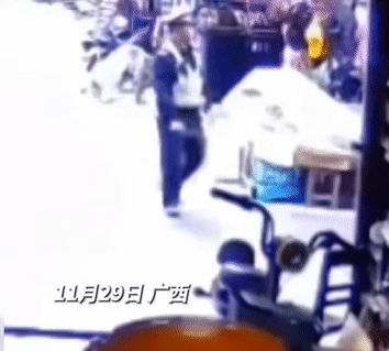 11月29日,广西贺州。一交警在执行过程中存在暴力执法的行为,对驶来的一辆电动车进行暴力拦截,电动车车主被送医治疗。(信息来源:华龙网)