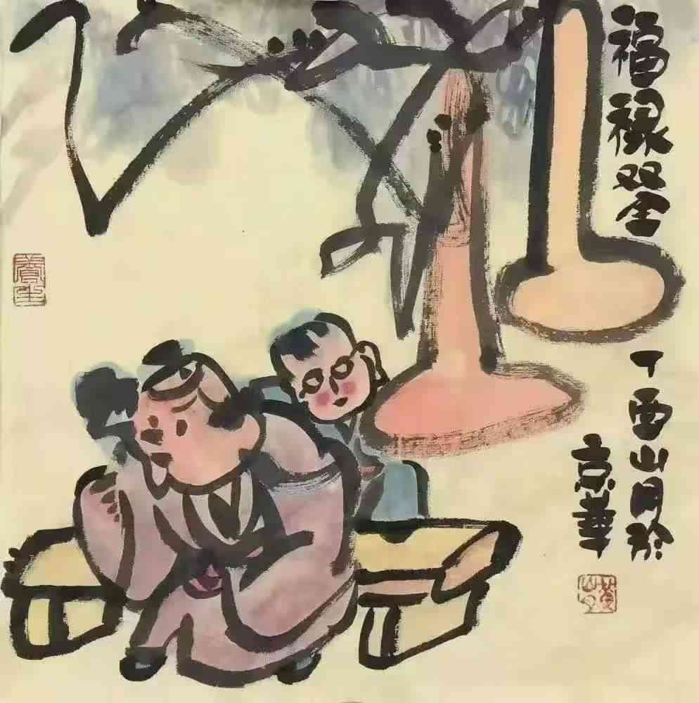 在笔墨语言的塑造上,黄山月实现了大写意笔墨与重彩表现的完美融合。其用笔老辣凝练,线条疾缓自如、刚柔相济,勾勒人物神态筋骨寥寥数笔便形神兼备;用墨兼备浓淡干湿焦五法,墨气苍润通透,虚实相生间意境悠远;设色则融合传统矿物颜料与现代绘画技法,色墨互融、层次丰富,既保留传统重彩的典雅厚重,又具备现代艺术的视觉冲击力。他笔下的人物、花鸟、山水,皆以意取象、以情赋形,无冗余之笔,无矫饰之态,于方寸尺幅间,藏天地生机、人间悲欢与时代风骨。