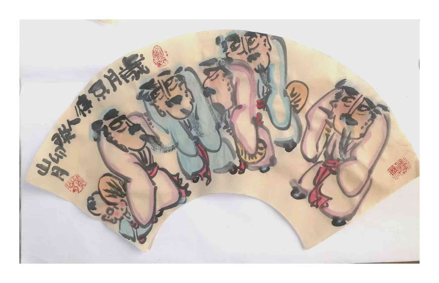 作为意笔重彩人物画的开创者,黄山月以“三原画风”重构了传统人物画的视觉与精神边界。原色之上,他摒弃艳俗堆砌的色彩调和,大胆运用朱砂、石青、明黄等纯粹原色碰撞交融,高饱和度的色彩兼具视觉张力与东方雅韵,浓而不媚、厚而不滞;原味之中,他回归笔墨本体,以洗练线条、酣畅墨色写形传神,舍弃刻意雕琢的形似,追求笔墨本真的意趣与气韵;原真之间,他以平视视角观照人间百态,剥离刻意的艺术修饰,捕捉市井烟火、人文风骨的本真状态,让每一幅作品都成为有温度、有情感的生命切片。