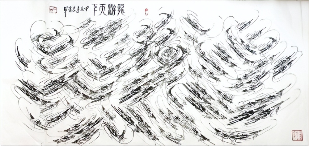 作品《奋斗》中线条如奔流涌动,墨迹交织出强劲动势,既似群策群力的集体奋进,又如个体突破束缚的拼搏姿态。其亮相北京大兴国际机场这一国际窗口,不仅以中国传统水墨艺术彰显文化自信,更以直观的艺术感染力激励往来旅客,呼应新时代奋发图强的精神内核,成为展现中国力量的流动艺术符号。