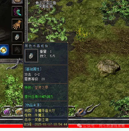 黑色水晶戒指:圣灵之甲,全面提升防御力战神盔甲虽然强,但如果想站得更稳,还需要黑色水晶戒指提供防御加成。