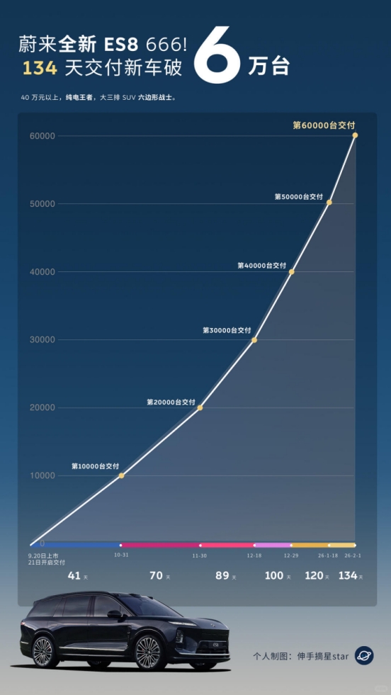 市场调整期往往伴随着消费者决策的更加理性和谨慎。此时,价格敏感型消费可能推迟,但价值导向型、升级置换型需求依然坚挺,甚至可能加速向头部品牌集中。蔚来1月的表现,特别是其高端品牌车型的稳健输出,印证了这一点。消费动能正从“普惠式增长”转向“结构性升级”,拥有强大品牌价值、产品力和独特服务体系的高端智能电动品牌,反而能获得更高的市场关注与份额。全新ES8在134天内达成6万台交付,就是这种“价值集中”趋势的极致体现,它表明在40万以上价格带,提供颠覆性体验的产品正快速收割市场。
