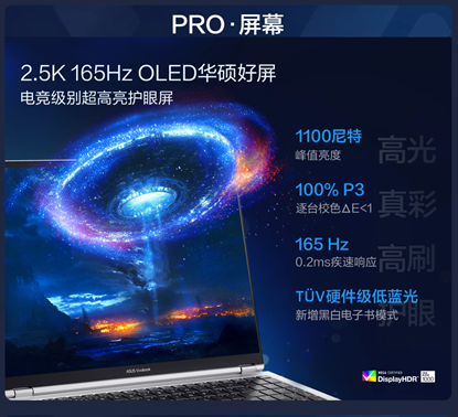 屏幕方面,华硕无畏Pro16 2026配备2.5K 165Hz OLED华硕好屏,以绝佳的视觉体验满足全方位用机需求。它拥有100% P3影院级广色域、100万:1高对比度、10-bit色深以及△E<1逐台工厂精准校色,以专业级创作色彩轻松满足剪辑特效、调光调色等高负载影像制作任务。尤其是峰值亮度大幅提升至1100nits,相较上一代近乎翻倍,无畏户外强光环境,画面显示随时随地清晰锐利。165Hz电竞级刷新率和0.2ms疾速响应,大幅减少拖影、撕裂、卡顿等现象,动态画面更丝滑流畅。