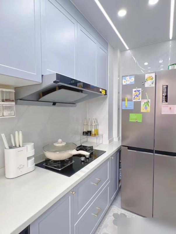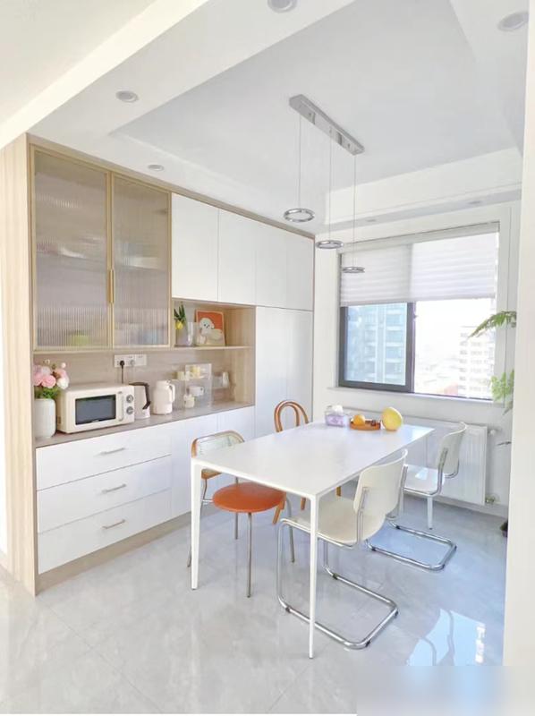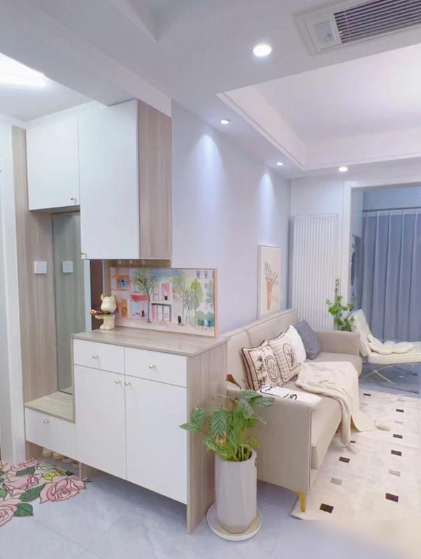 最难得是家具配色克制,浅原木色柜门配哑光白墙面,清爽得能呼吸。