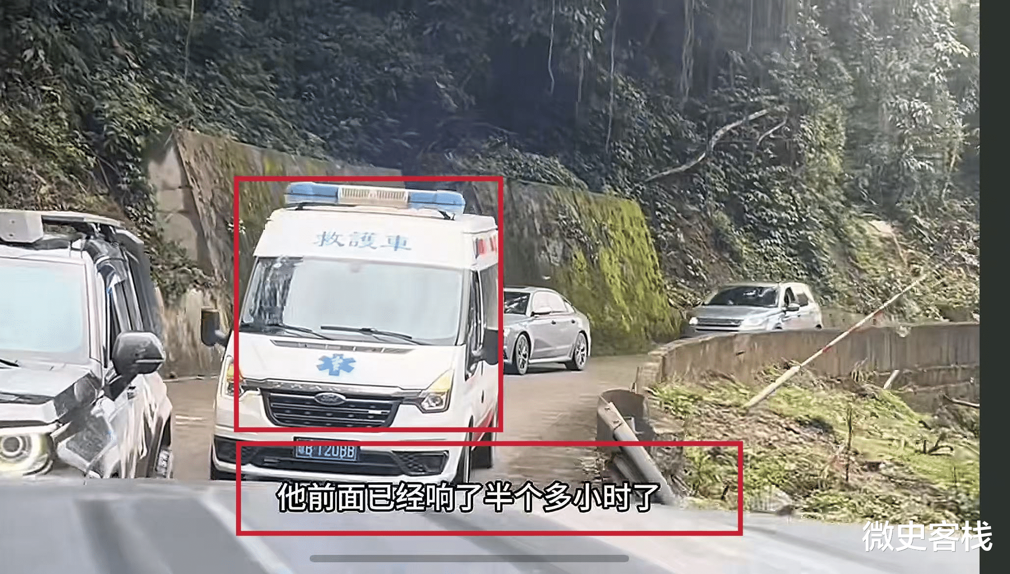 当博主开了一段路程后,又听到后方有救护车警报声,这时候车流量也比较大,所以博主他们没有合适的机会避让这辆救护车,于是他们拿起对讲机问对方刚才不是避让过了,怎么还在后面?没想到对方说他们不是救援的,而是游客,刚才下去拍照了!