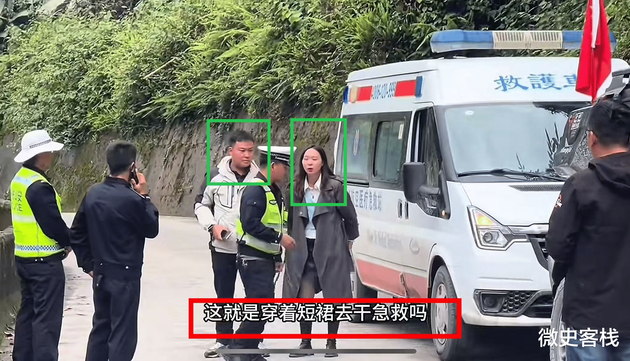 从现场拍摄的画面来看,这辆救护车中至少坐着三人(两男一女),从其打扮来看也不像是救援队,个人打扮和其他游客没什么区别。