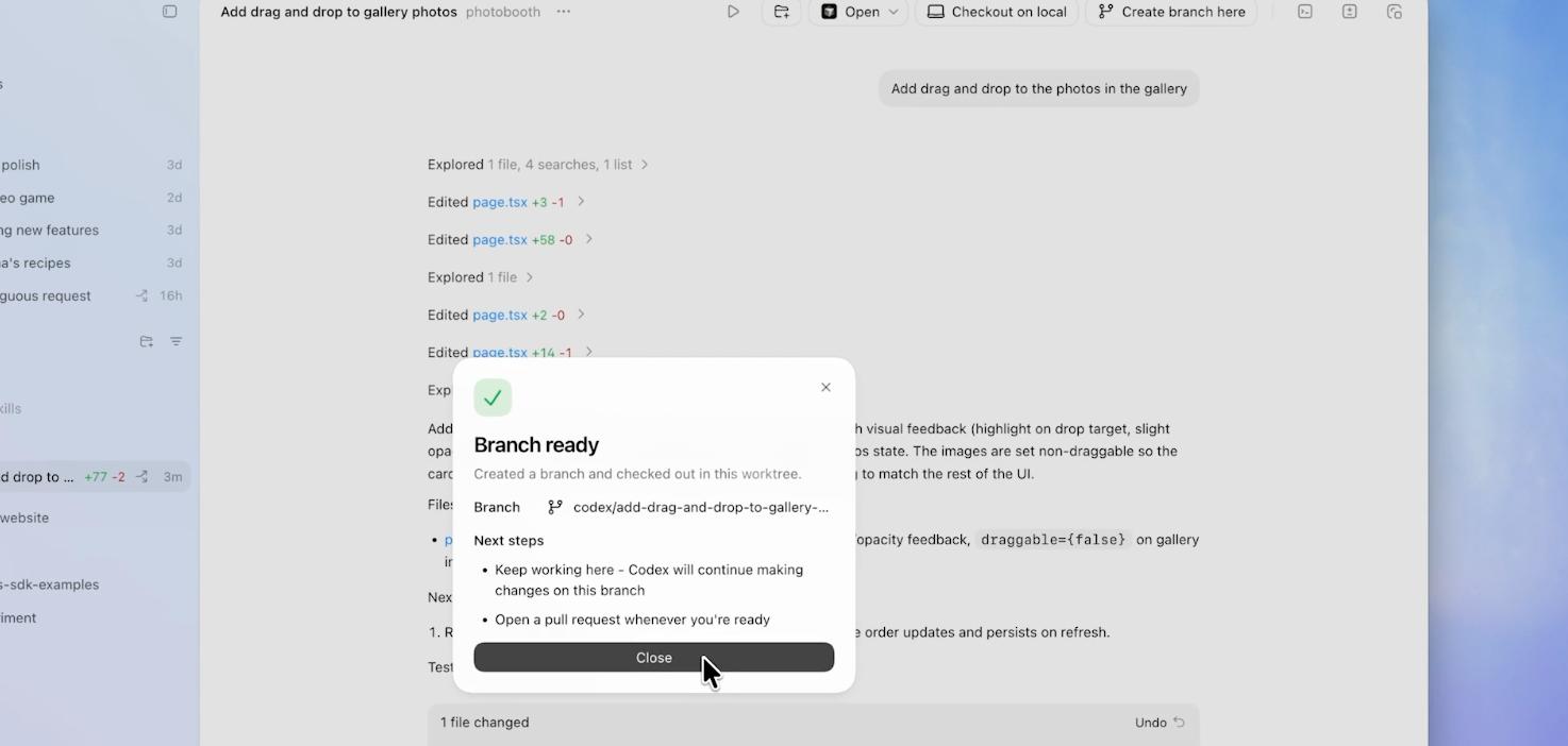 智能体可以在按项目组织的独立线程中运行,因此开发者可以在不丢失上下文的情况下无缝切换任务。该应用允许开发者在线程中查看智能体的更改,对差异进行评论,甚至可以在编辑器中打开它以进行手动更改。