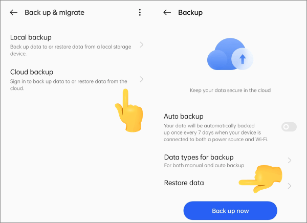如何通过手机的云服务在Android上恢复已删除的图片的步骤(以 OPPO 为例):