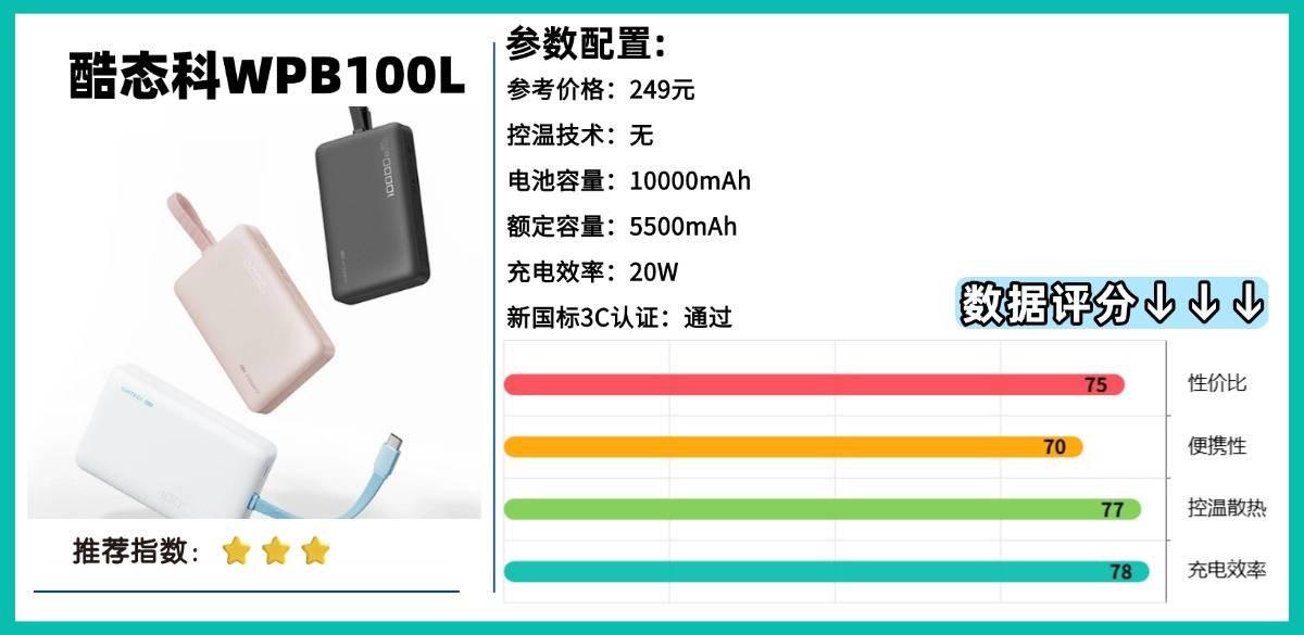 第六款:酷-态科WPB100L充电宝