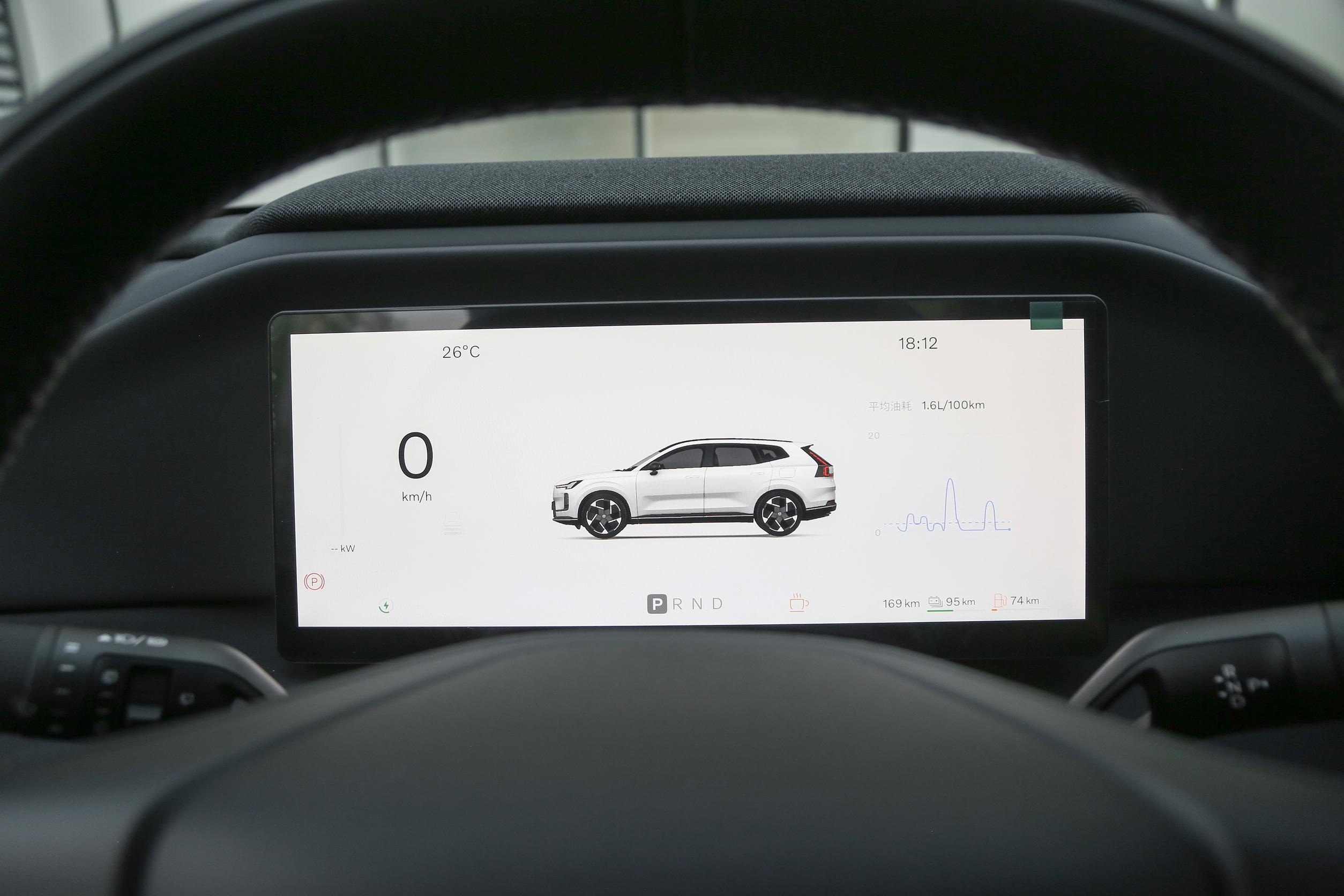 中控台很简洁,实体按键不多,大部分操作在15.4英寸中控屏里完成。这个设计有人喜欢有人不喜欢,我个人的标准很简单:别卡、别难找、别把常用功能藏得太深。它的屏幕分辨率高,触控响应也快,日常滑动、切换导航、调空调,没有那种“你点了它半天才反应”的烦躁。12.3英寸仪表盘信息清晰,车速、电量、油耗这些关键数据放得合理,不会堆满花里胡哨的图。