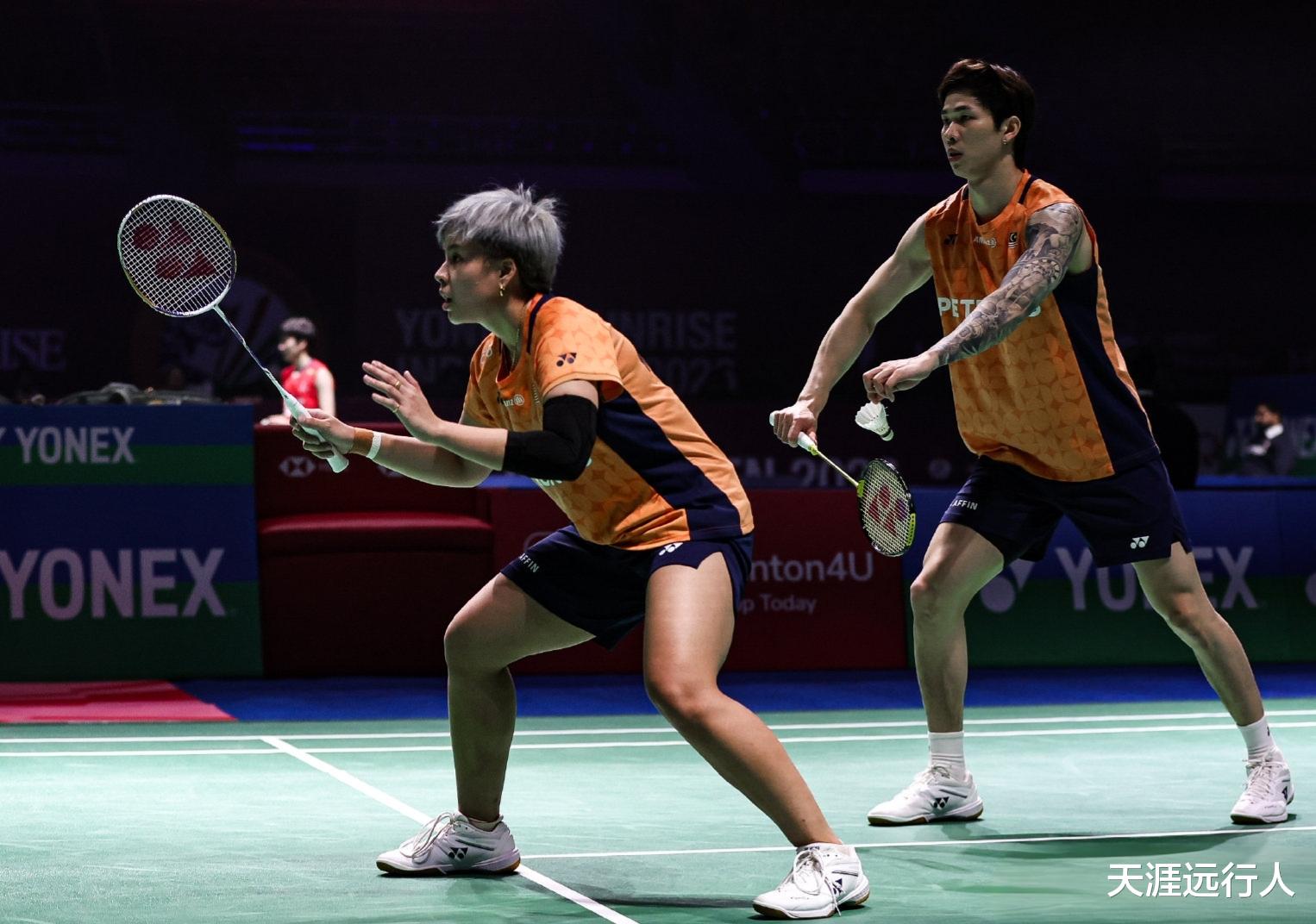 国羽新锐组合朱一珺/李茜,以19-21, 22-20, 10-21,大战三局,不敌新科世锦赛冠军陈堂杰/杜颐沩,遗憾出局,陈堂杰/杜颐沩收获双方首次交手的胜利,下一轮将对战泰国组合帕克卡波/沙西丽。