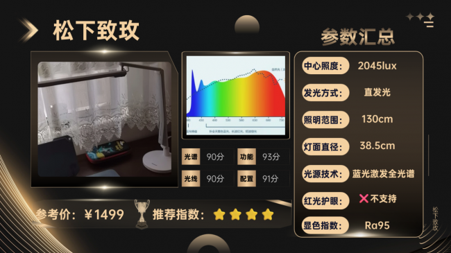 4、松下致玫品牌定位:松下是知名家电品牌,产品线范围广泛,在照明领域也有着长期技术积累,产品覆盖各类照明场景,致玫是其护眼台灯系列中的智能款,主打的是便捷操作性,兼顾日常基础照明与基础护眼需求。