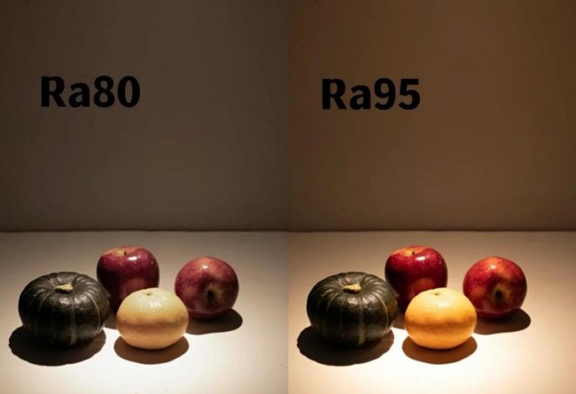 显色指数(CRI或Ra)衡量的是灯光还原物体真实颜色的能力,太阳光的Ra定义为100。显色性差会导致色彩失真、对比度下降: