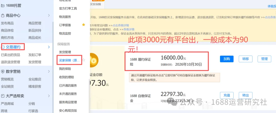 ✅ 权益一:首年3000元保证金履约险费用补贴,1688以“履约保证险”形式为你代缴3000元店铺保证金,无需店铺开通后出资。