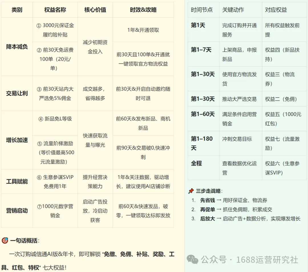 1688诚信通AI版新开商家七大专属权益详细介绍如下: