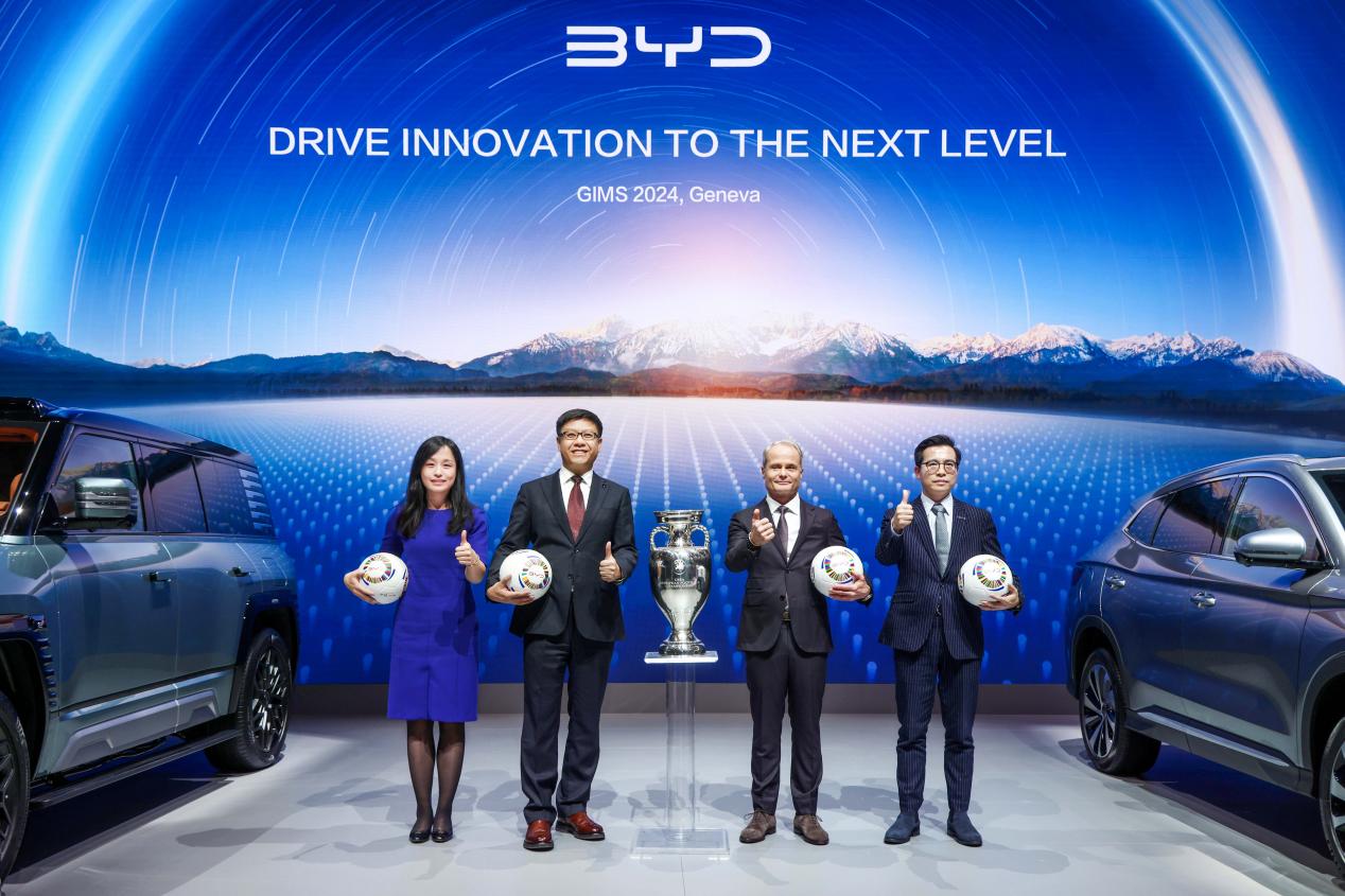 作为2024欧洲杯®官方合作伙伴,比亚迪的新能源汽车将作为官方用车,为赛事提供绿色出行服务。发布会当天,欧足联代表受邀莅临展台,深入了解比亚迪领先的新能源技术与产品。