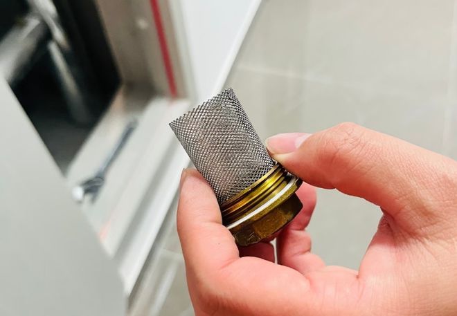 除了清洗滤网本身,建议大家也清洁一下滤网外壳内部,可以用细毛刷清洁,里面也是有杂质的,清洁完以后再把滤网重新安装上去。