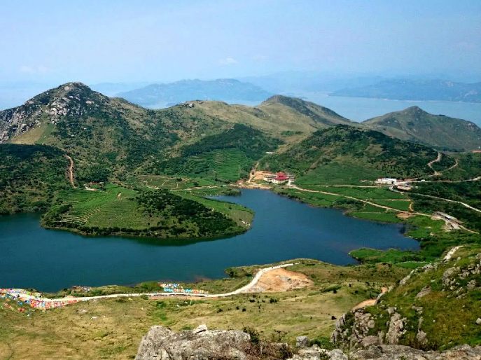 山、湖、草、海在此浓缩。大天湖面积1000多亩,小天湖200多亩,两湖相隔1000多米,各有泉眼,常年不竭,水质甜美,清澈见底。湖畔多有野生乌龟出没。湖四周山坡平缓,是有“南国天山”之誉的万亩草场。在这里恍若置身于“天苍苍,野茫茫,风吹草低见牛羊”的大西北草原,你很难想象,在碧波万顷的东海之上竟有如此神奇的意境!小嵛山岛为一无人岛,面积3.28平方公里,沿岸因被海水冲刷风化,基岩裸露,礁石林立,海蚀地貌十分突出,构成奇特的景观,海拔仅50米,岛上植被茂密,栖息着成千上万只海鸥和其他候鸟,乍然飞起,十分壮观!