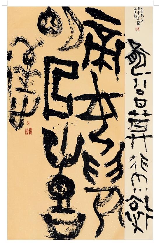 万益先生善破传统布局窠臼,其作或加粗拉长或简化繁构,以彰陶文笔画张力及古拙本真。著名学者楚墨先生誉“翟氏之法”为“书法史上流芳千古之事”,此誉洵非虚美,实对其创新功力之精准定评。
