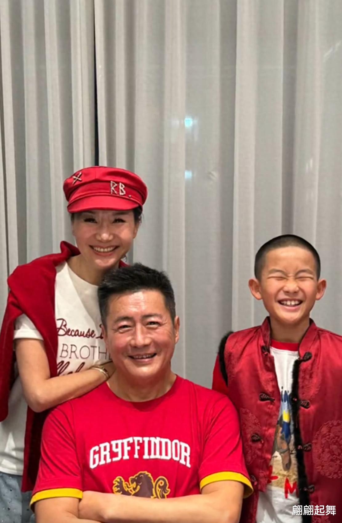 这不,一家三口合照中,儿子站在高曙光一侧,咧着嘴大笑的他眼睛都笑得眯成了一条缝,完全是那种毫无保留、发自内心的开心。他的站姿也很放松,身体略微侧向镜头,显得特别活泼好动,充满了少年的朝气。一看就是在满满爱意中长大的孩子。